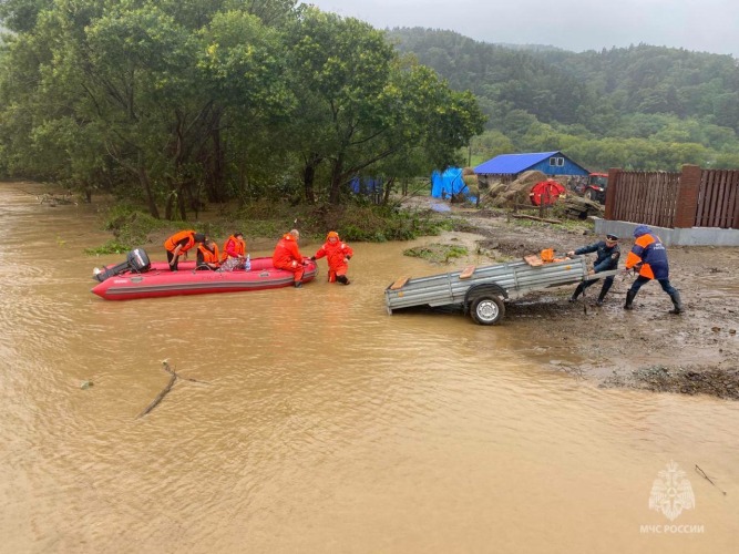 После сильных дождей в Невельском районе подтопило жилые дома и приусадебные участки. Сотрудники МЧС России эвакуируют людей и их имущество. В пункте временного размещения находятся девять человек, остальные у родственников и знакомых. В местах подтопления работает лодочная переправа, специалисты круглосуточно мониторят обстановку.