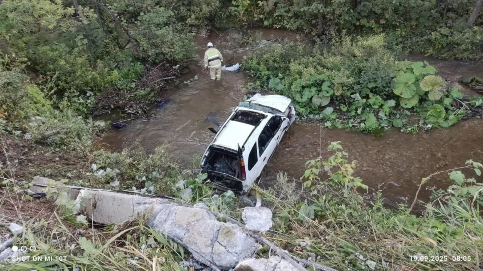 19 сентября в Тымовском рядом с домом № 137 по улице Кировской произошло ДТП с участием легкового автомобиля. По неустановленной причине авто слетело с дороги и упало в русло реки Анга.