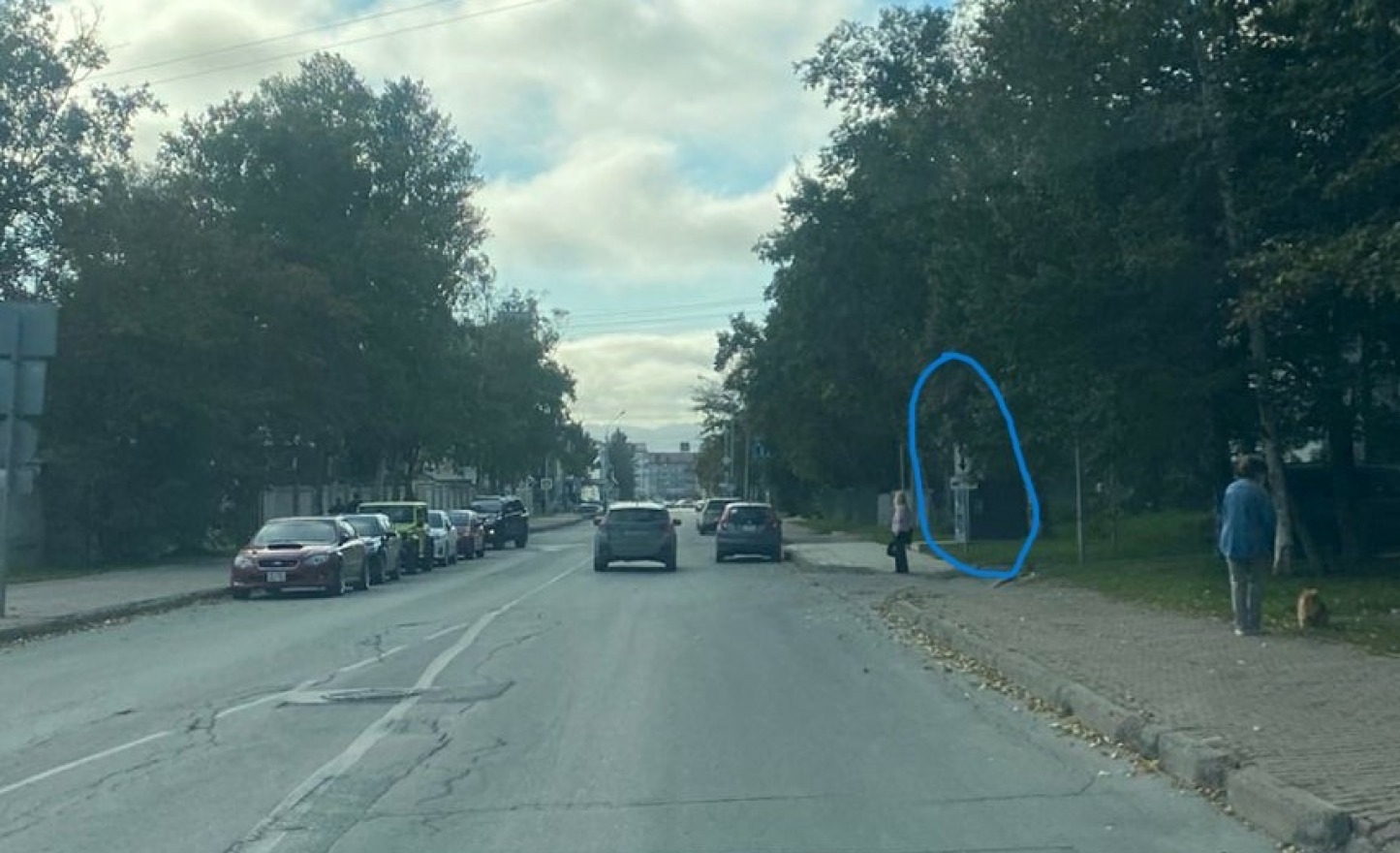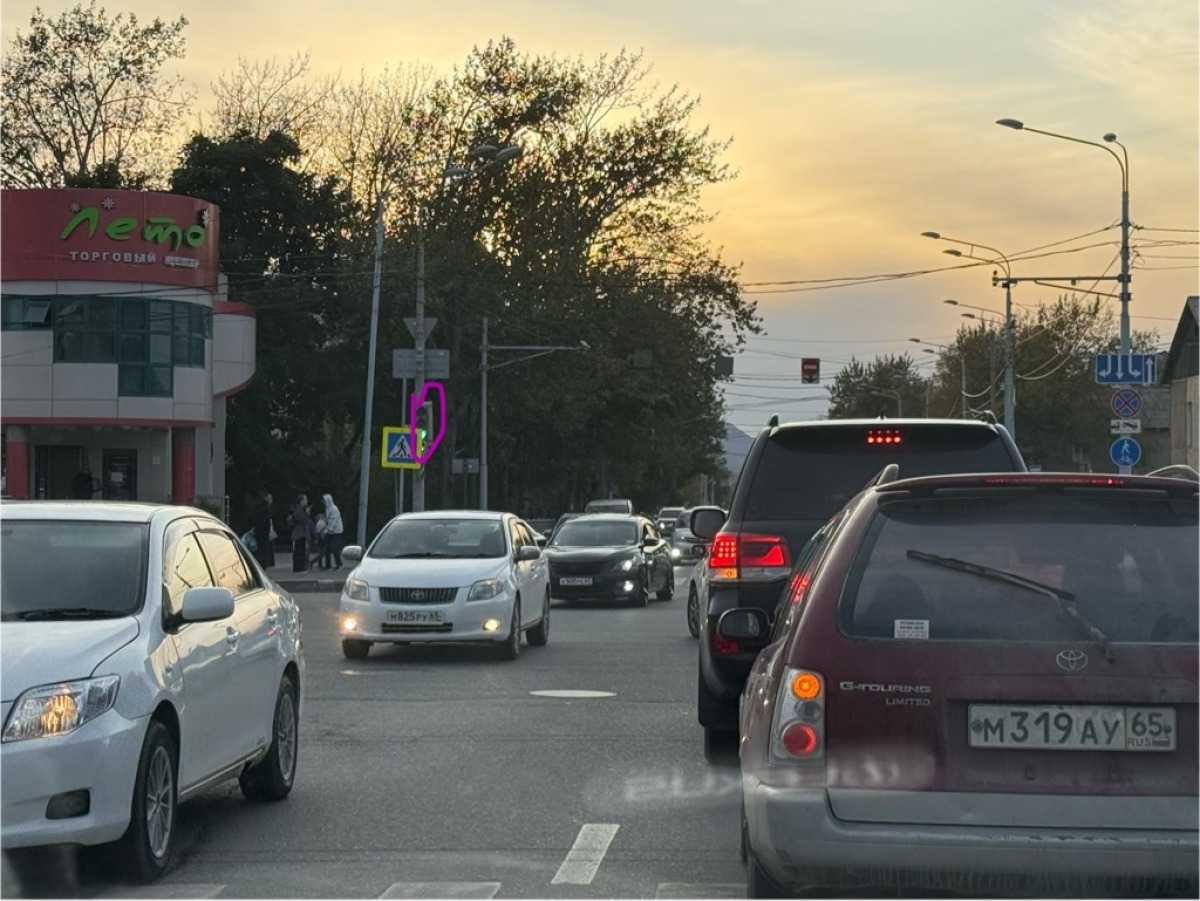 На пересечении проспекта Мира и улицы Пограничной знак пешеходного перехода установлен так, что перекрывает светофор для водителей. Обращение отправилось в МКУ «Управление мониторинга дорожного хозяйства и благоустройства города Южно-Сахалинска».