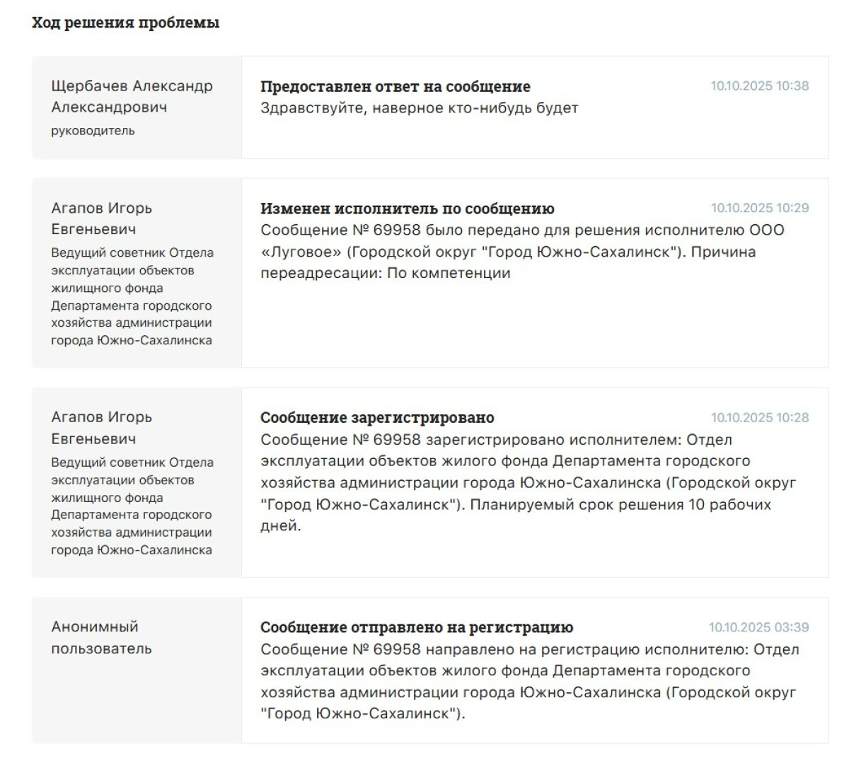 На портале «Сахалин.онлайн» обращение было отправлено в ООО «Луговое», откуда пришел очень странный ответ. Полная цитата: