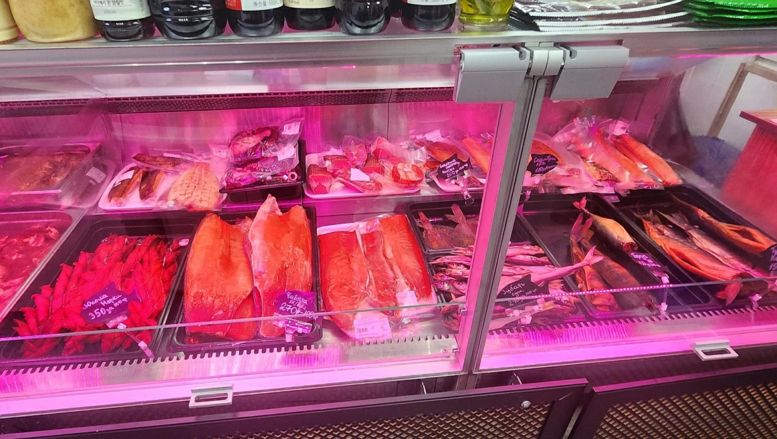 В результате проведенного комплекса оперативно-разыскных мероприятий в торговой точке и месте переработки была обнаружена немаркированная продукция, включая лососевую икру, мясо и фаланги краба, рыбу (кету, форель, симу), устрицы общим весом свыше 300 килограммов на общую сумму свыше 950 тысяч рублей.