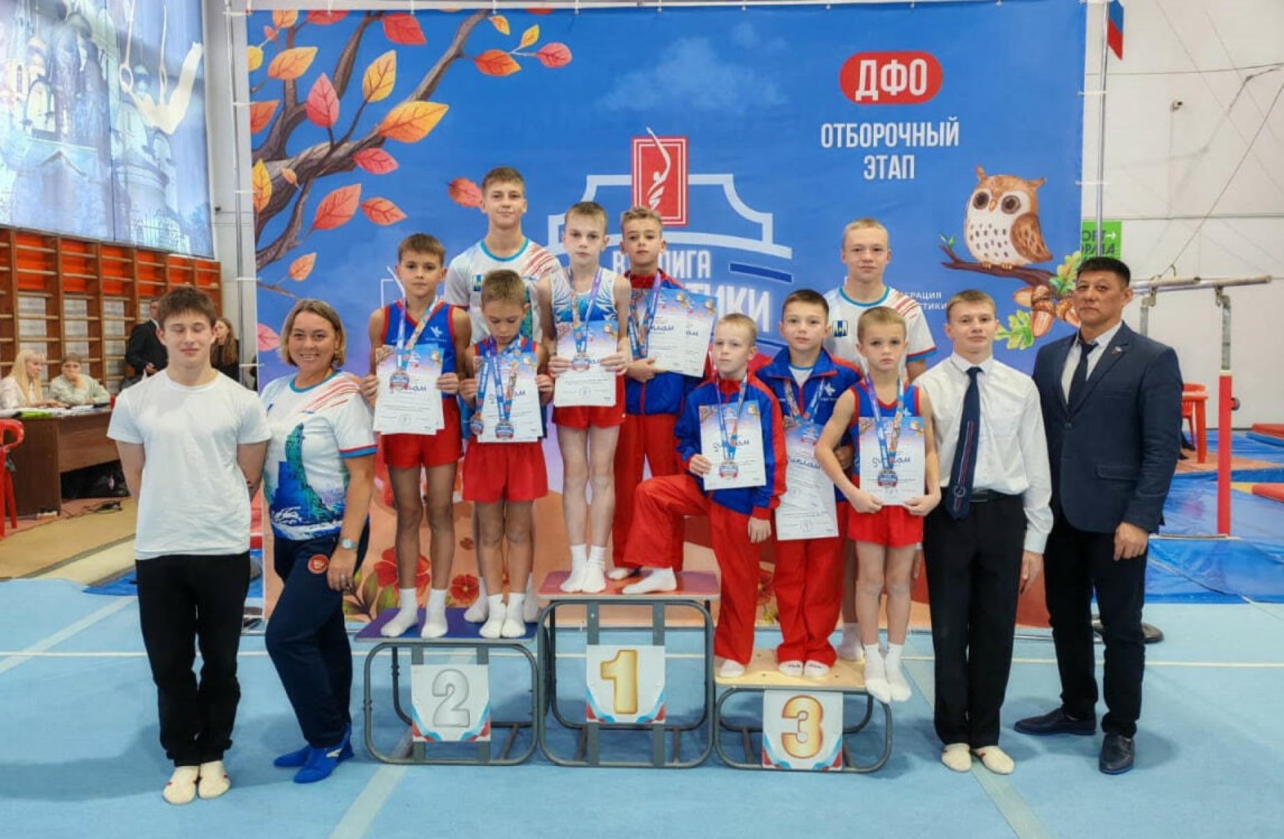 В рамках «Лиги гимнастики» сахалинские спортсмены завоевали две золотые медали в командных соревнованиях. В команде по третьему спортивному разряду выступали Алексей Бадыкшанов, Кирилл Острочревый и Егор Осаволюк, по первому юношескому разряду — Арсений Стаценко, Денис Алексютенко, Максим Кузьменко и Владимир Путиленко.