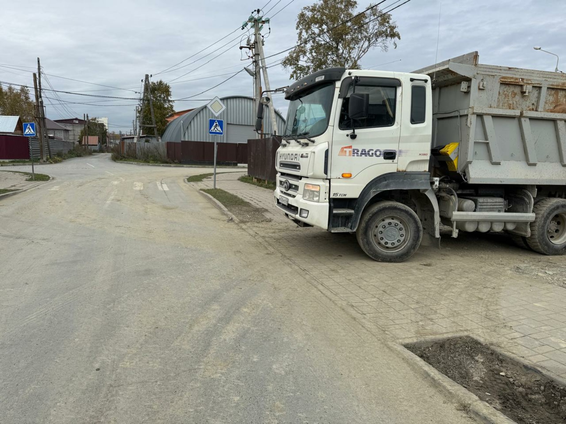 Вторая точка — улица Физкультурная в районе дома №2б. Строительная техника цепляет грязь на колеса и раскатывает на всей дороге. Уборкой же никто себя не утруждает.
