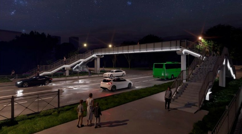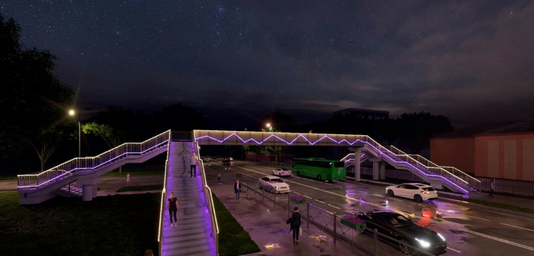 Они приложили несколько вариантов переделки надземного пешеходного перехода. Эскизы отличаются цветом подсветки объекта.