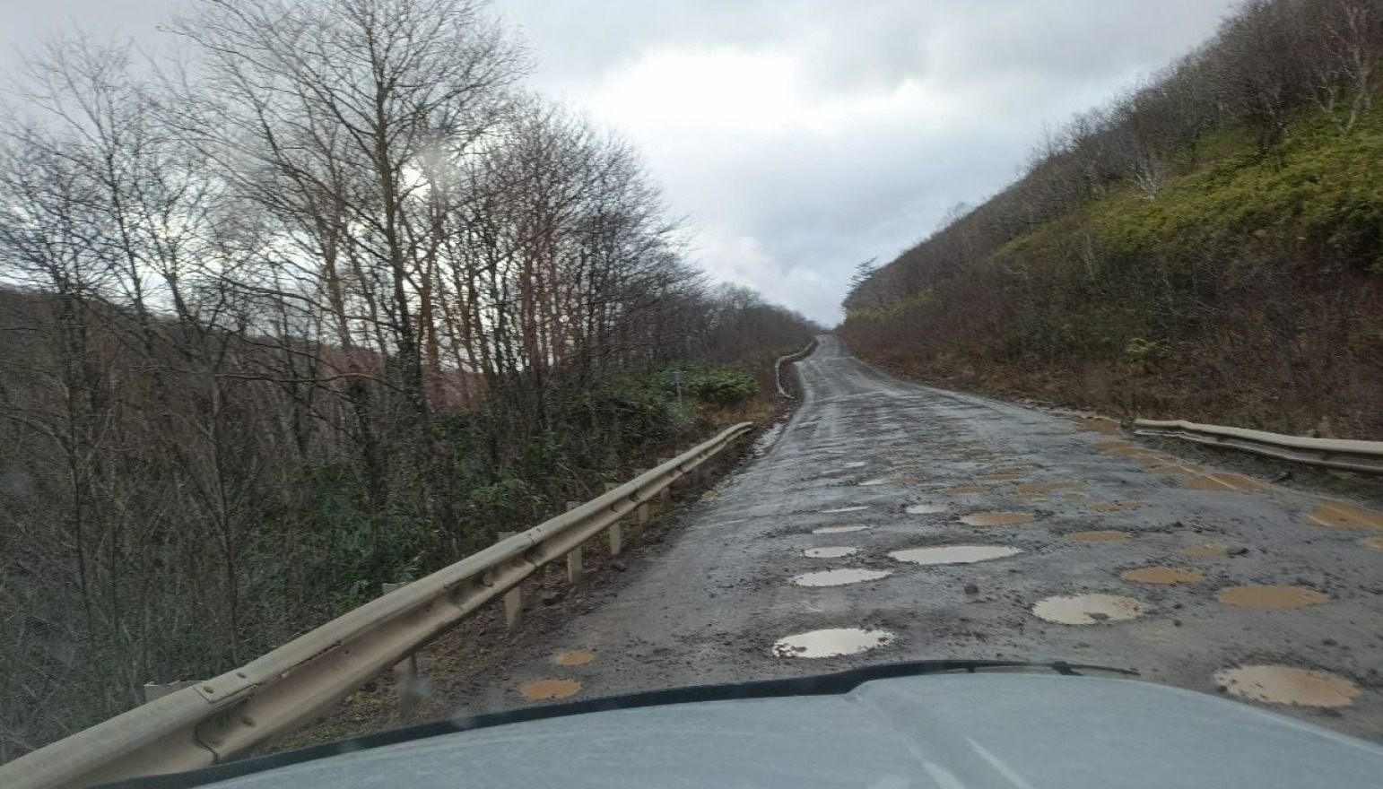 На портале «Сахалин.онлайн» появился фоторепортаж с автомобильной дороги, которая соединяет Курильск и село Буревестник на Итурупе. На протяжении всей трассы полотно находится в идеально плохом состоянии. Жалобу отправили в отдел ЖКХ администрации Курильского района.