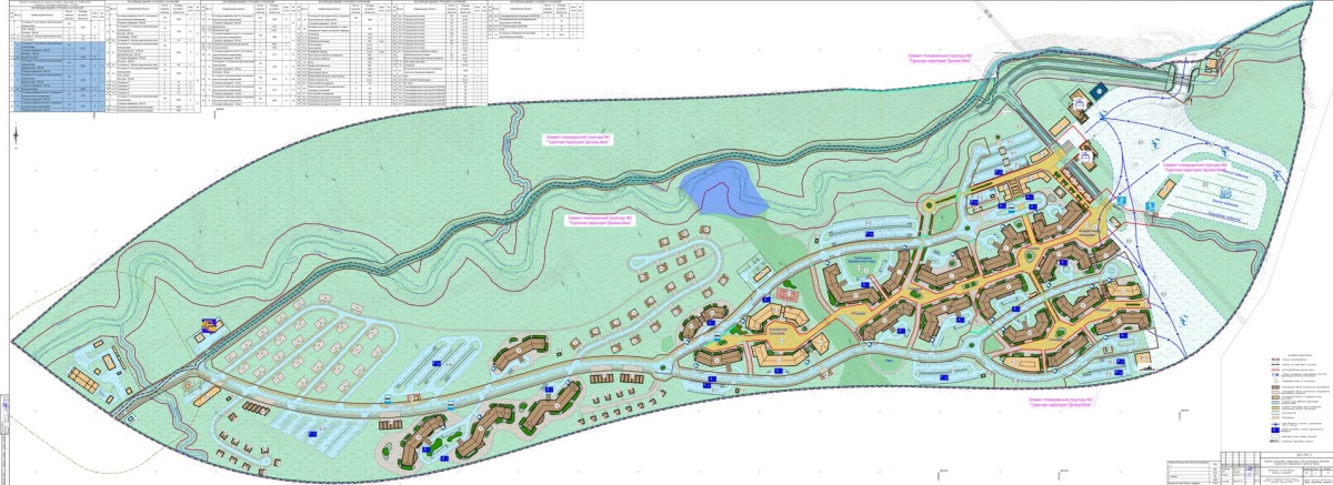 Перейдем к самим проектам. В документации расписаны все объекты, которые должны появиться в горной деревне у горы Красной. Коммерсанты вместе с федеральными властями сначала заявляли, что в гостиничных комплексах должно быть 1660 номеров, потом — 2600. Это число по-прежнему фигурирует на сайте проекта. Сейчас в документации удалось насчитать 2262 номера, в том числе 480 предназначены для персонала. Это четыре трехзвездочные гостиницы только сотрудников «Долины Айна».
