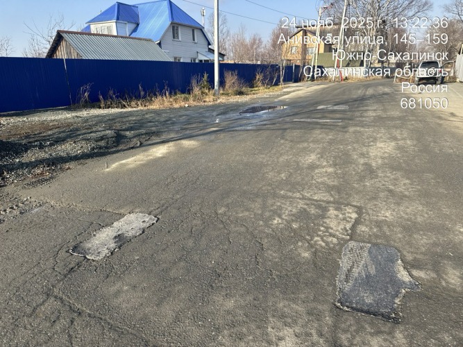 Почему-то в зависимости от района чиновники принимают разные решения, хотя погода во всем Южно-Сахалинске одинаковая. Горожане писали о ямах на улице Анивской, 164 еще в сентябре, восстановление им обещали провести до 2 октября. К середине ноября работы проведены не были, поэтому появилась повторная жалоба. Ямы за это время стали больше.
