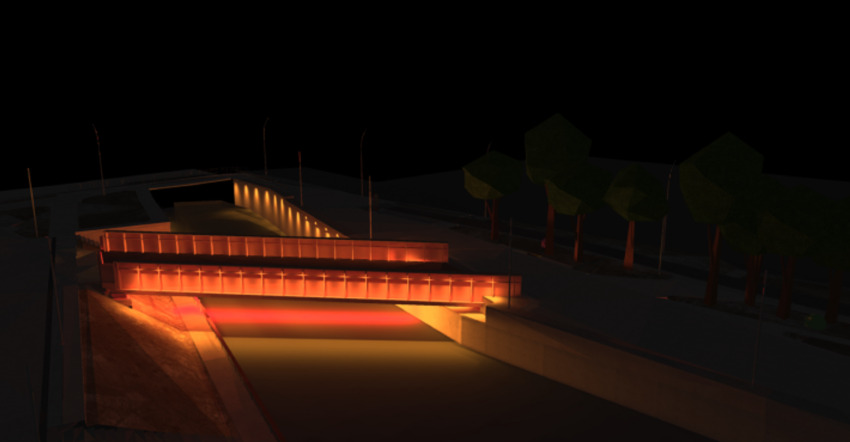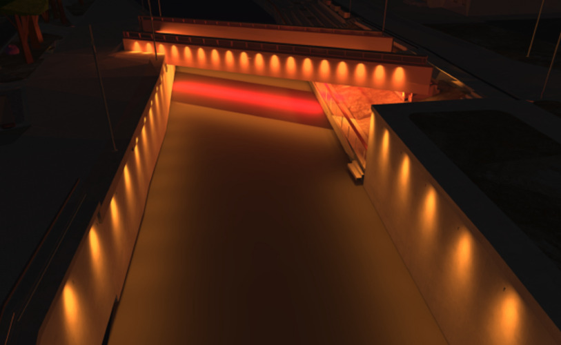 Согласно техническому заданию, в рамках третьего этапа благоустройства набережной нужно сделать архитектурно-художественную подсветку. Она должна быть динамической. Светильники появятся на вело-пешеходном мосту и подпорных стенах русла реки, а также освещение доберется до зеленой зоны и малых архитектурных форм.
